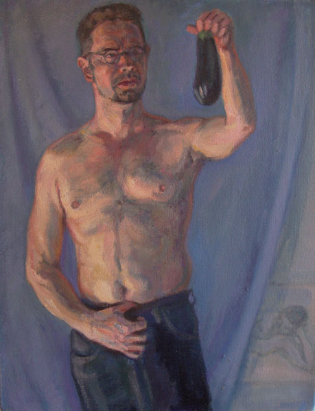 Self-portrait with eggplant, 44,5 x 34,5, 2001